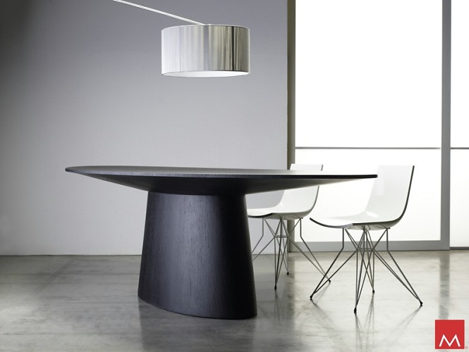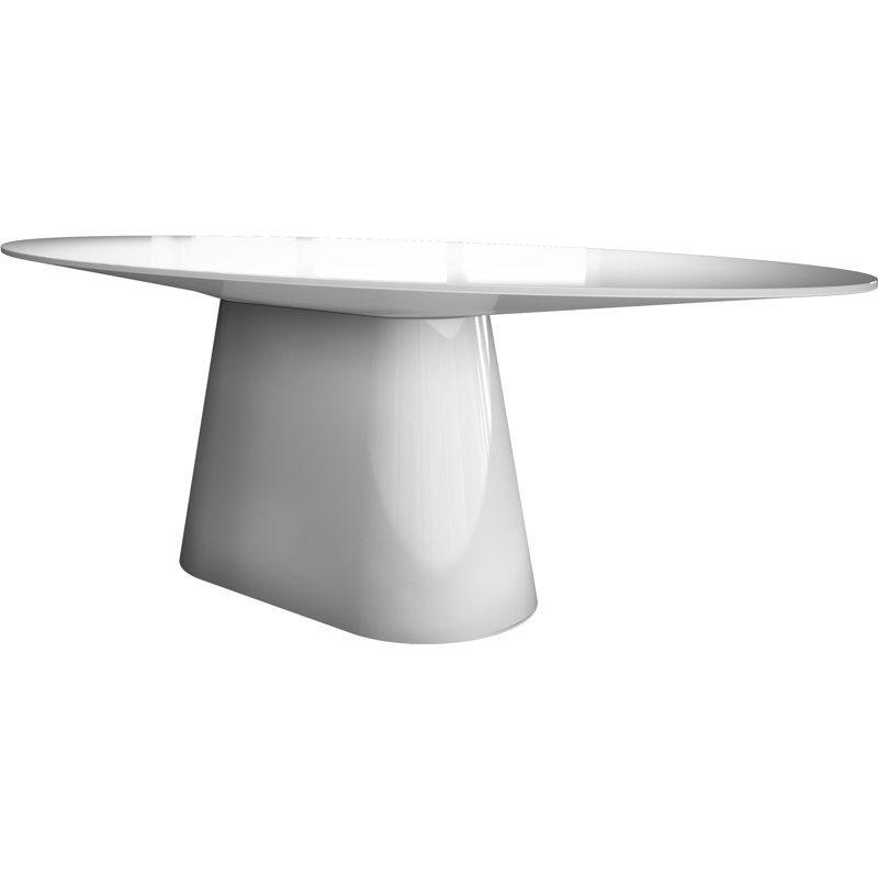 Rectangle metal legs add a dash of contemporary style. A design where scale and materiality defy each other, the sullivan dining table is both approachable and weighty. The gently tapered oval pyramid base is reflected back by the gracefully tapered top. The modloft sullivan dining table in glossy white has a bold look with its imperious presence and dynamic tapered lines. Combining rustic charm with modern accents, the sullivan dining table is the best way to introduce a fresh look to your dining room.